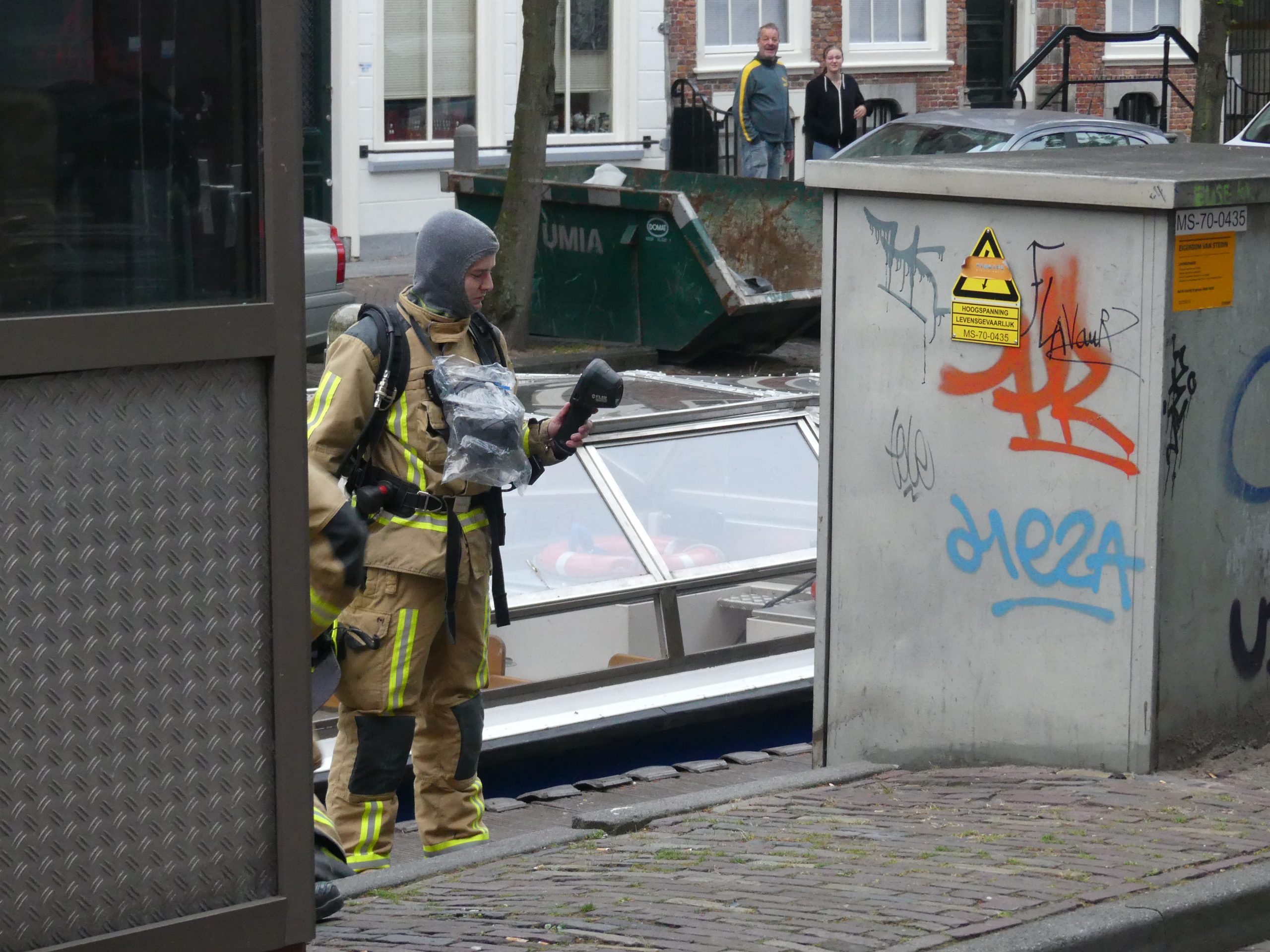 Delft – Donderdagavond 15 juli werden de hulpdiensten gealarmeerd nadat er een harde knal en een lichte rookontwikkeling werd waargenomen bij een elektriciteitskast aan de Koornmarkt in Delft.