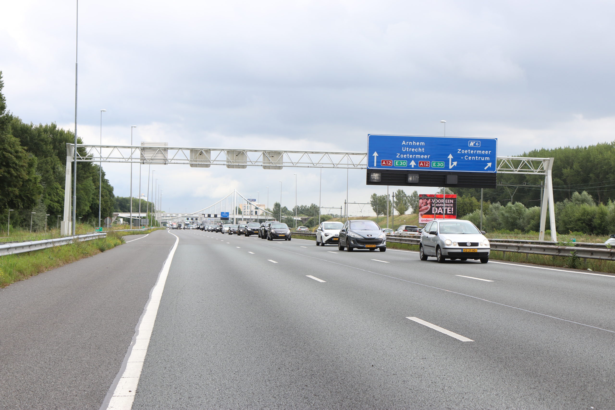 Lichtgewonde en file na ongeval op A12 in Zoetermeer