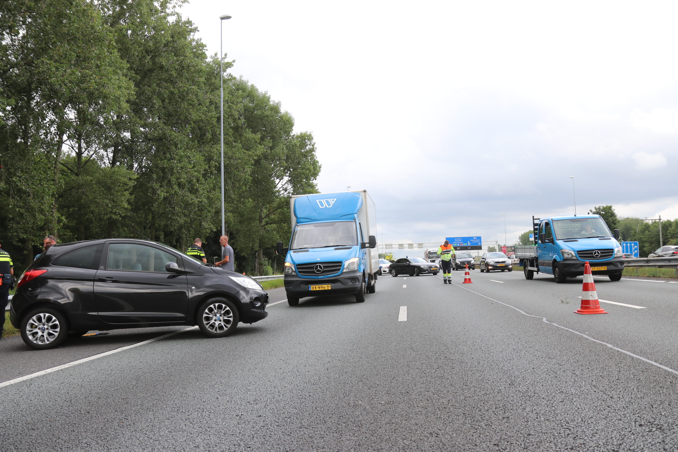 Vrijdagmiddag werden de hulpdiensten omstreeks 16:30 uur gealarmeerd voor een ongeval op de A12 in de richting van Den Haag. Twee leden van de DSI (Dienst Speciale Interventies) kwamen op de A12 het ongeval tegen en hebben het incident beveiligd.