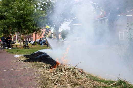 Berg gemaaid gras in brand in Berkel en Rodenrijs